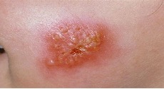 different parts of the body, such as the face, the hands, and the feet. As impetigo progresses, the sores eventually rupture